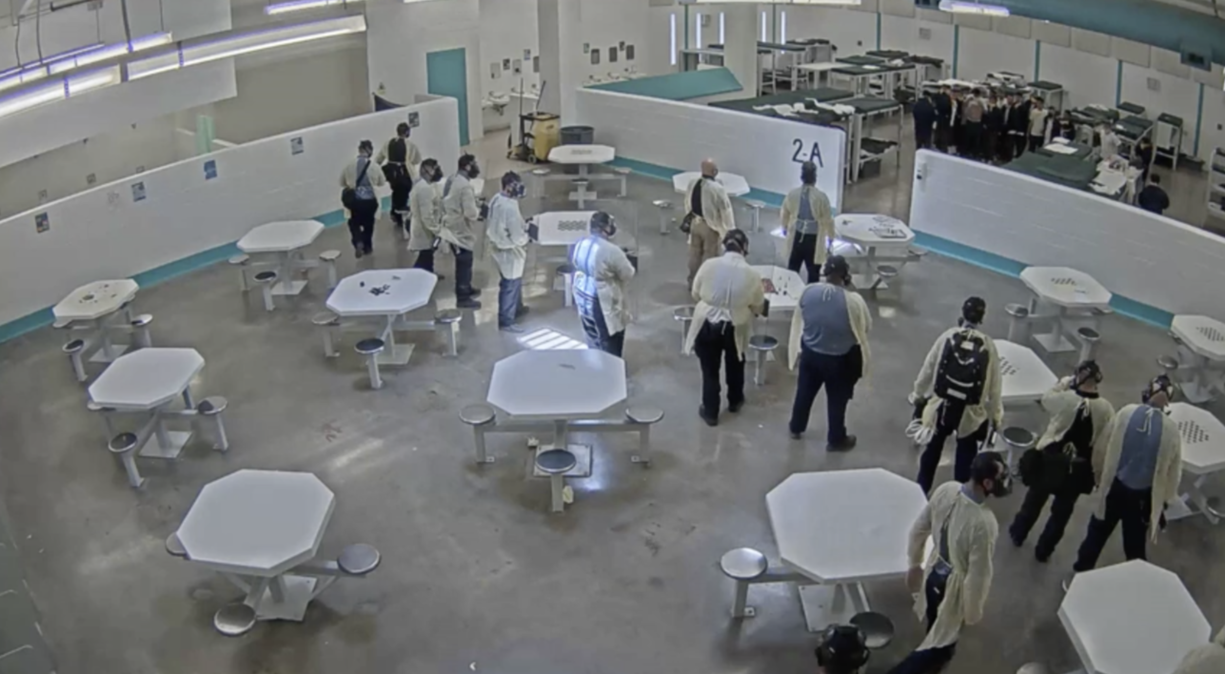 The attack took place on May 14, 2020. Surveillance video shows 18 CoreCivic guards from the Torrance County Detention Facility rounding up the 20 detainees, forcing them to strip down and line up shoulder to shoulder. They then proceed to deploy pepper-spray canisters and grenades of OC spray on them. The men are seen dispersing in agony, desperately wiping their faces and gasping for air, some even falling to the ground.